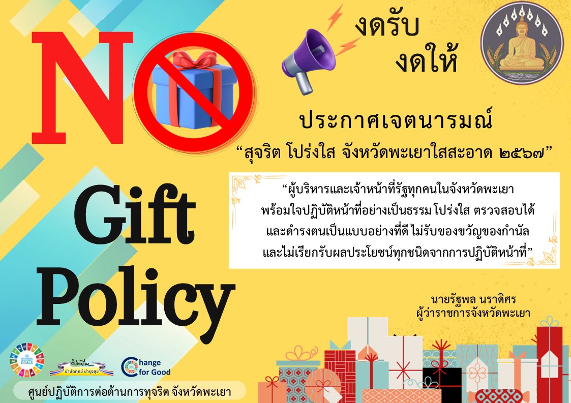 ประกาศเจตนารมณ์ เรื่อง นโยบายไม่รับของขวัญและของกำนัลทุกชนิดจากการปฏิบัติหน้าที่ (No Gift Policy) ประจำปีงบประมาณ พ.ศ. 2568